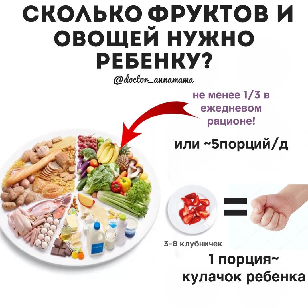 ❓Сколько фруктов и овощей нужно ребенку?