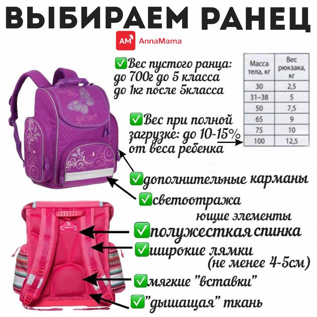 ✔️в идеале - проводить регулярные "контрольные взвешивания" и вынимать все лишнее из рюкзака (при ношении слишком тяжелого рюкзака ребенок автоматически наклоняется вперед, прогибая поясницу: риск искривления позвоночника).
